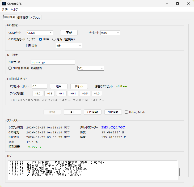 【FT8/FT4・デジタルモードの強い味方】高精度時刻同期ツール「ChronoGPS」