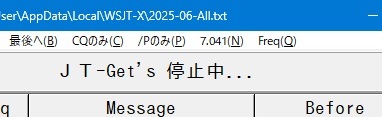 ※環境設定などのダイアログボックス表示中は、右図のようにALL.TXTの読込み処理を中断しています。 データの表示&修正ウインドウがアクティブなときも、ALL.TXTの読込み処理を中断しています。 ※WSJT-X v2.6.1/v2.7.0 と JTDX v2.2.159 のFT8で動作確認しています。 |
