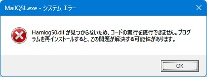 - Turbo HAMLOG/Winとは別のフォルダにインストールした場合、こんなエラーが出てhQSLは動作しません。