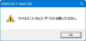ファイルメニューからHAMLOGで使用しているHAMLOGユーザーリストを開く必要があります。