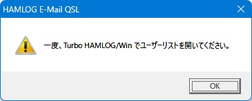 - Turbo HAMLOG/Winとは別のフォルダにインストールした場合、こんな警告が出てhQSLは動作しません。