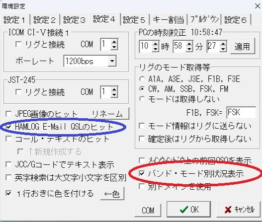 > > > 添付画像は昼前にアップした環境設定4の画像ですが、紙カードの画像は表示されるということですから「JPEG画像のヒット」にはチェックが入っているようですね。hQSLの画像を表示させるにはすぐ下の青で囲った「HAMLOG-Email QSLのヒット」にチェックを入れて画像の在り場所を指定してください。