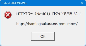 > HANLOGのオプションよりJG1MOU 又は 他にしてもHTTPエラー(No.401)となり最新版がダウンロードできません。https://hamlog,sakurane.jp です。