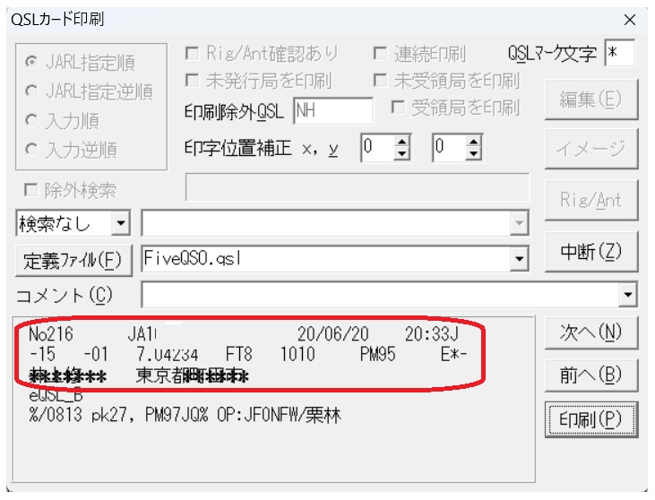 作者標準定義ファイルのFiveQSO,qslと仮定しての話です