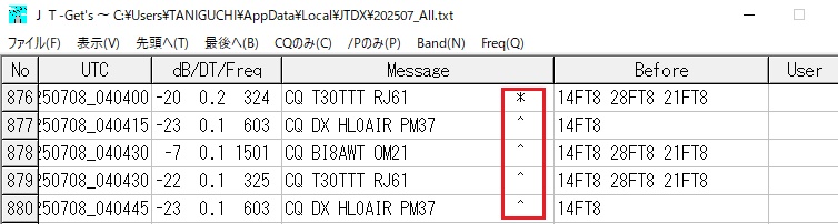 No. 28483 JTDXで*^が表示される
